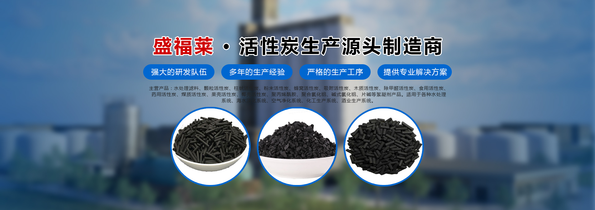 河南盛福萊環(huán)??萍加邢薰臼且患覍I(yè)銷售各種規(guī)格型號活性炭、污水處理藥劑、碳源的公司,位于中原凈水材料基地-鞏義市,是從事各類活性炭及相關(guān)產(chǎn)品生產(chǎn)、研發(fā)及銷售的一體化企業(yè)。主營產(chǎn)品:水處理濾料、顆粒活性炭、柱狀活性炭、粉末活性炭、蜂窩活性炭、吸附活性炭、木質(zhì)活性炭、除甲醛活性炭、食用活性炭、藥用活性炭、煤質(zhì)活性炭、果殼活性炭、椰殼活性炭、聚丙烯酰胺、聚合氯化鋁、堿式氯化鋁等絮凝劑產(chǎn)品、碳源,適用于各種水處理系統(tǒng)、海水淡化系統(tǒng)、空氣凈化系統(tǒng)、化工生產(chǎn)系統(tǒng)、酒業(yè)生產(chǎn)系統(tǒng)。服務(wù)于各種大、中、小型自來水廠、石油化工廠、造紙印染廠、鋼鐵廠、發(fā)電廠、食品廠、冶金廠等行業(yè)。河南盛福萊環(huán)??萍加邢薰緞?chuàng)立以來